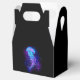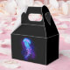 Large, blue, artistically drawn, glowing, bright jellyfish, with long tentacles on black background with purple bioluminescence. Luminous jellyfish.
