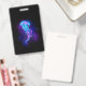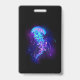 Large, blue, artistically drawn, glowing, bright jellyfish, with long tentacles on black background with purple bioluminescence. Luminous jellyfish.