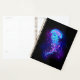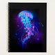 Large, blue, artistically drawn, glowing, bright jellyfish, with long tentacles on black background with purple bioluminescence. Luminous jellyfish.