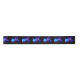 Large, blue, artistically drawn, glowing, bright jellyfish, with long tentacles on black background with purple bioluminescence. Luminous jellyfish.