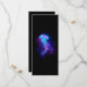 Large, blue, artistically drawn, glowing, bright jellyfish, with long tentacles on black background with purple bioluminescence. Luminous jellyfish.