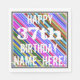 This fun birthday-themed paper napkin design features a message like "HAPPY 37th BIRTHDAY, NAME-HERE!", where the name can be customised. The background features a vibrant, multicolored stripes pattern. The message text is coloured white, and has a distressed appearance. Napkins like these could perhaps be used at a birthday party for somebody who is celebrating their thirty seventh birthday. [~Z0000270]
