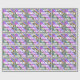This fun birthday-themed wrapping paper design features a message like "HAPPY 69th BIRTHDAY, NAME-HERE!", where the name can be customised. The background features a vibrant, multicolored stripes pattern. The message text is coloured white, and has a distressed appearance. Wrapping paper like this could perhaps be used when wrapping gifts or presents being given to somebody who is celebrating their sixty ninth birthday. [~Z0000272]