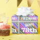 This fun birthday-themed wrapping paper design features a message like "HAPPY 78th BIRTHDAY, FIRSTNAME!", where the name can be customised. The background features a vibrant, multicolored stripes pattern. The message text is coloured white, and has a distressed appearance. Wrapping paper like this could perhaps be used when wrapping gifts or presents being given to somebody who is celebrating their seventy eighth birthday. [~Z0000272]