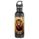 Lion themed water bottle. A beautiful ai illustration of a lion in a stunning stained glass and broken tiles motif style in earthy colours like brown and blue.
