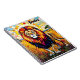 Lion themed personalised notebook. A beautiful ai illustration of a lion in a stunning stained glass and broken tiles motif style in earthy colours like brown and blue.