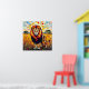 Lion themed wall art. A beautiful ai illustration of a lion in a stunning stained glass and broken tiles motif style in earthy colours like brown and blue.