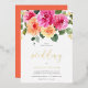 Vibrant Colourful Spring Flowers Wedding Gold Foil Invitation