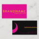 A sleak modern design with bold contrast colours of hot pink, black and yellow. Simple and modern. Name, phone and e-mail. Classic business card but with a vibrant colour combination.
