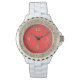 This custom stylish watch in vivid coral pink accent colour background for yourself or as a gift sure to make an impression in all occasions. Click on the "Customise it!" button to reveal tools to customise this product if you wish using a text editor and an image loader.