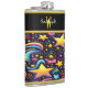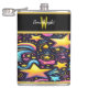 Vibrant Cosmic Patterns Swirl Through a Night Sky Hip Flask