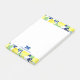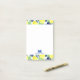 Trendy vibrant lemons and blue floral tile patterned post it notes with personalised text.