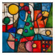 This Glossy Finish Poster showcases a bold abstract artwork in a cubist or stained-glass style, built from striking geometric shapes framed by thick black lines. Its vivid palette—featuring reds, blues, greens, and yellows—creates an energetic mosaic effect that stands out beautifully on glossy paper. A stylized Christmas tree and a whimsical blue-faced figure in a red hat add a festive, modern twist, making this poster a unique centerpiece for holiday decor or art lovers.