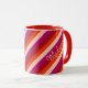 This mug is part of the vibrant summer stripe collection to brighten up your home. Perfect if you want to be ahead of the curve: Bright reds and oranges are starting to make a comeback with a twist on the 1970s by adding energetic pinks. Mix and match any of the four single colours or choose stripes all over to complete the look.