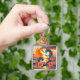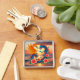 Vibrant Dragon and Phoenix Artwork with Flower Key Ring