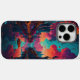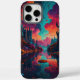 This phone case design features a vibrant and surreal landscape, reminiscent of a dream or a fantasy world. Dominated by a rich, saturated colour palette, the scene showcases a flowing river or body of water that reflects the fiery hues of the sky above. The abstract clouds swirl with shades of red, orange, yellow, and purple, creating a dramatic and dynamic atmosphere.