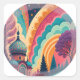 Add a burst of colour and imagination to your packaging or event with this mesmerising circular sticker featuring a fantasy mosque surrounded by swirling rainbows, cosmic stars, and lush trees. The dreamy colour palette—teal, coral, lilac, goldenrod, and magenta—creates a surreal, eye-catching effect perfect for both personal and professional projects. Whether you're sealing party favours, decorating wedding invitations, or branding artisan products, this design makes your message unforgettable.
