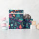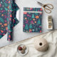 A colourful array of Christmas-themed wrapping paper features cheerful trees, stars, and gifts, capturing the joyful spirit of the holiday season with intricate patterns and bright colours.