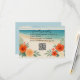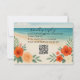 This refined RSVP card is the perfect companion to your beachside wedding invitation, carrying forward the romantic coastal aesthetic with vibrant floral accents and serene hues. The front features a clean, customisable layout with sample wording and a placeholder for a QR code, ideal for linking to a personalised RSVP website or guest information hub. Delicate watercolor motifs—such as orange-toned hibiscus frame the design without overwhelming the blank central space, allowing your text and digital details to take centre stage.