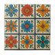 A charming piece that brings a touch of floral elegance to any space. Each floral motif is set within its own square, framed by a striking royal blue border that beautifully accentuates the vibrant colours of the flowers. The corners of the blue frame are adorned with delicate green leaf flourishes, adding to the tile's intricate charm. The background of each tile is a soft, creamy beige, allowing the vivid colours to truly pop. Bring the spirit of a blooming garden into your living space with this enchanting and authentic decorative tile. This floral mosaic tile features a distinct flower blooming in different colours. Perfect for adding a splash of colour to kitchen backsplashes, bathroom walls, fireplace surrounds, or as a unique decorative accent piece.