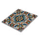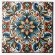 A richly coloured tile design showcases a symmetrical pattern filled with flowing motifs and floral elements.