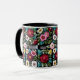 Vibrant Floral Embroidery Quartet on Black Mug