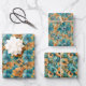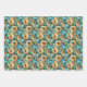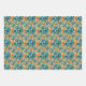 Vibrant Floral Pattern with Bold Teal, Turquoise Wrapping Paper Sheet