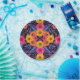 These paper plates feature flowers and leaves in saturated shades of yellow, orange, purple, and hot pink surrounded by red outlines.