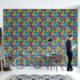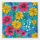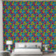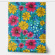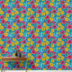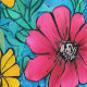 Vibrant flowers in multicolor pattern, pink, blue and yellow.