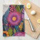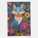 Vibrant Fox Dot Art Amidst Lush Flora Tea Towel