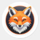 A stylized fox head emblem with vivid orange, white, and gray fur and bright yellow eyes. Ideal for branding, logo design, apparel, and digital media seeking energetic wildlife imagery.