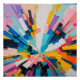 A dynamic burst of colorful geometric shapes radiating from the center, creating a striking modern design. The bold brushstrokes and vivid tones give this piece an energetic and artistic feel, perfect for statement decor and fashion.