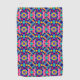 Vibrant geometric pattern featuring pink, blue, and yellow shapes forming a symmetrical design on a towel, shown in both vertical and horizontal orientations.