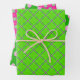 Vibrant Green and Pink Varied Geometric Pattern Wrapping Paper Sheet