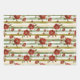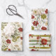 Spring Botanical and Bloom Wrapping Paper Sheets Set with Three Green and Red Watercolor Effect Designs.