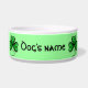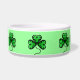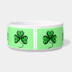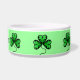 Beautiful lucky shamrocks in bright green with an elegant black border with a green background on a dog food dish to personalise with your dog's name. I really love how this turned out.