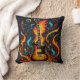 Vibrant guitar engulfed in flames and swirls cushion