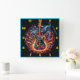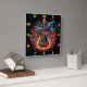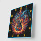 A stunning guitar emerges from a whirlpool of vibrant colours and musical notes, radiating energy and creativity in a captivating display.
