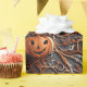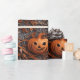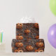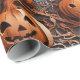 This wrapping paper design features a lively and festive Halloween theme with cheerful jack-o’-lantern faces set against a dark background. The pumpkins are illustrated with expressive, smiling carvings, surrounded by swirling, ornate vine patterns in shades of orange and white, giving the design a dimensional, hand-cut paper look. The repeating pattern creates a bold, whimsical effect that’s perfect for wrapping gifts during the Halloween season. Both spooky and playful, this design captures the spirit of autumn celebrations, birthday parties and baby showers, while adding a stylish decorative touch.