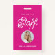 This vibrant, eye-catching company ID badge for your staff is much more on-trend and colourful than any old ID badge! The hot pink design features big, bold white retro script, with room for your employee's photo, name, and job title. This badge is up to date enough for your entertainment or musical event or concert staff, security, and performers, video, and content creators.