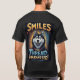 Bright, playful illustrated husky head with a cheerful expression, surrounded by splashes of color and bold lettering that reads 'Smiles Per Thread Guaranteed'. Perfect for positive, energetic posters, gifts, or marketing materials.