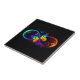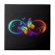 Vibrant infinity with rainbow butterfly on black ceramic tile