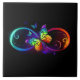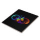 Vibrant infinity with rainbow butterfly on black ceramic tile