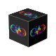 Vibrant infinity with rainbow butterfly on black cube