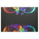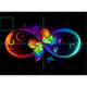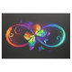 Vibrant infinity with rainbow butterfly on black fabric