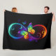 Vibrant infinity with rainbow butterfly on black fleece blanket