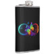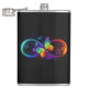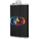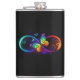 Vibrant infinity with rainbow butterfly on black hip flask