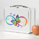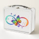Vibrant infinity with rainbow butterfly on black metal lunch box