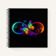 Vibrant infinity with rainbow butterfly on black notebook