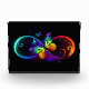 Vibrant infinity with rainbow butterfly on black photo block